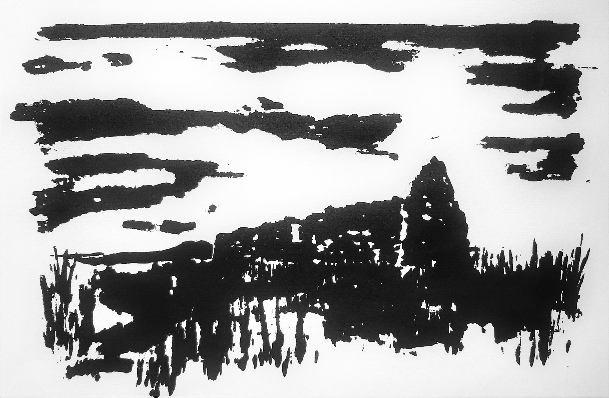 Screen print on paper Edition of 10. Image Size: h:270mm w:410mm Depicts an abandoned croft. The image was taken from a series of drawings made at the site.